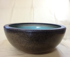 白釉ビードロ流し浅型水鉢 13号